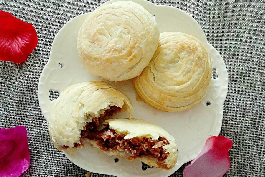 温水、玉米胚芽油、玉米胚芽油、盐、白糖、水油皮:普通面粉、油酥:普通面粉