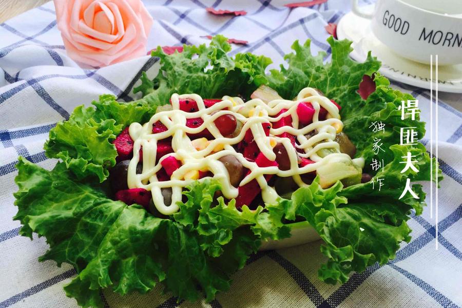 生菜、玉米粒、奇异果、红心火龙果、玫瑰葡萄