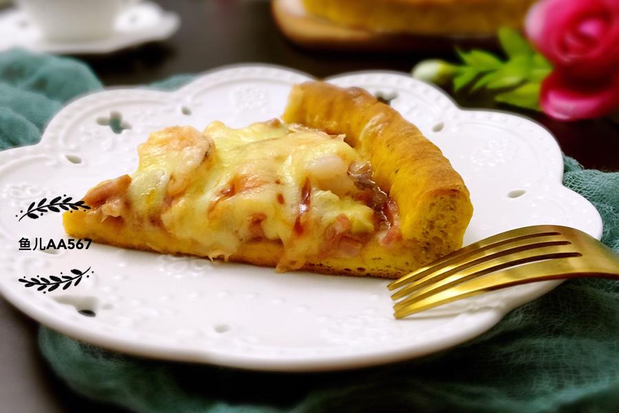 火腿、牛奶、干酵母、小番茄、高筋粉、青豌豆、低筋粉、虾仁、披萨馅料、盐、橄榄油、橄榄油、马苏里拉芝士、自制披萨酱、细沙糖、披萨饼皮用料、紫橄榄丝