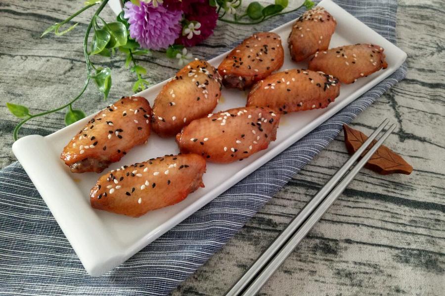 鸡翅、芝麻、蜜汁酱、蜂蜜、番茄酱、白糖、柠檬汁、盐(腌制用料)、料酒(腌制用料)、葱(腌制用料)、姜(腌制用料)、酱油(腌制用料)
