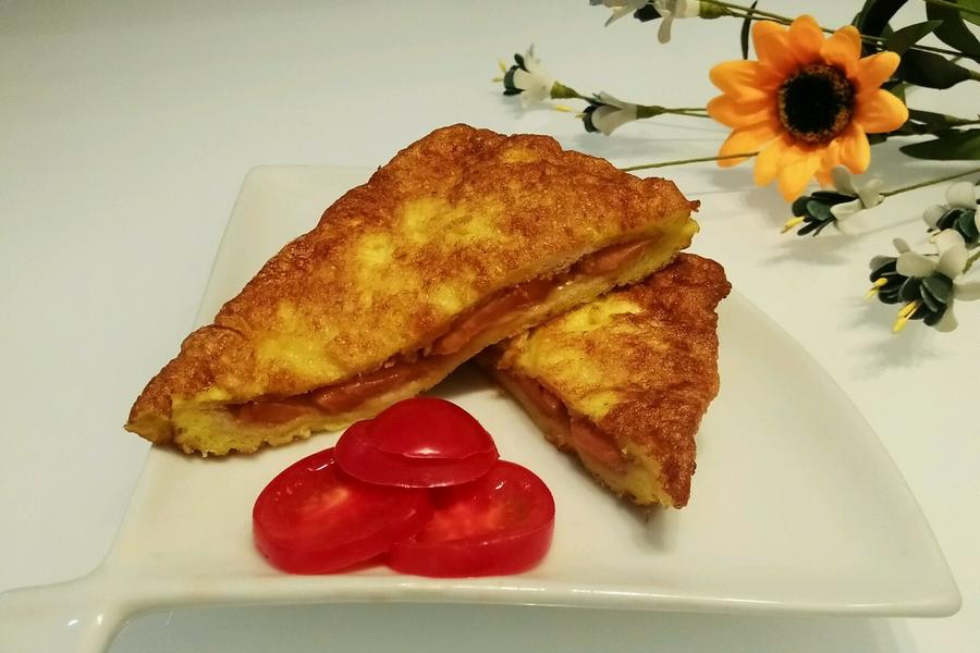 鸡蛋、午餐肉、切片、芝士、沙拉酱或花生酱