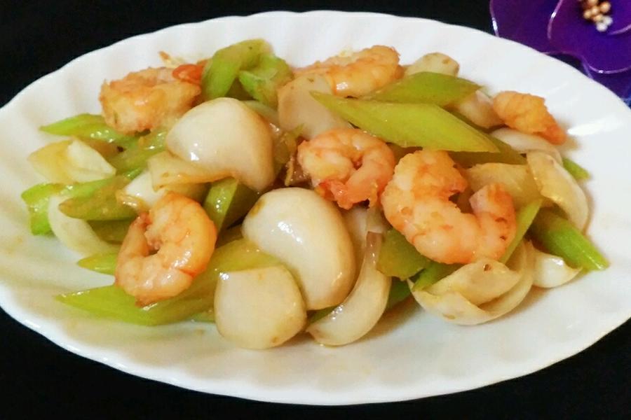 百合、腰果、西芹、虾仁、蒜、盐、鸡精、花椒粉