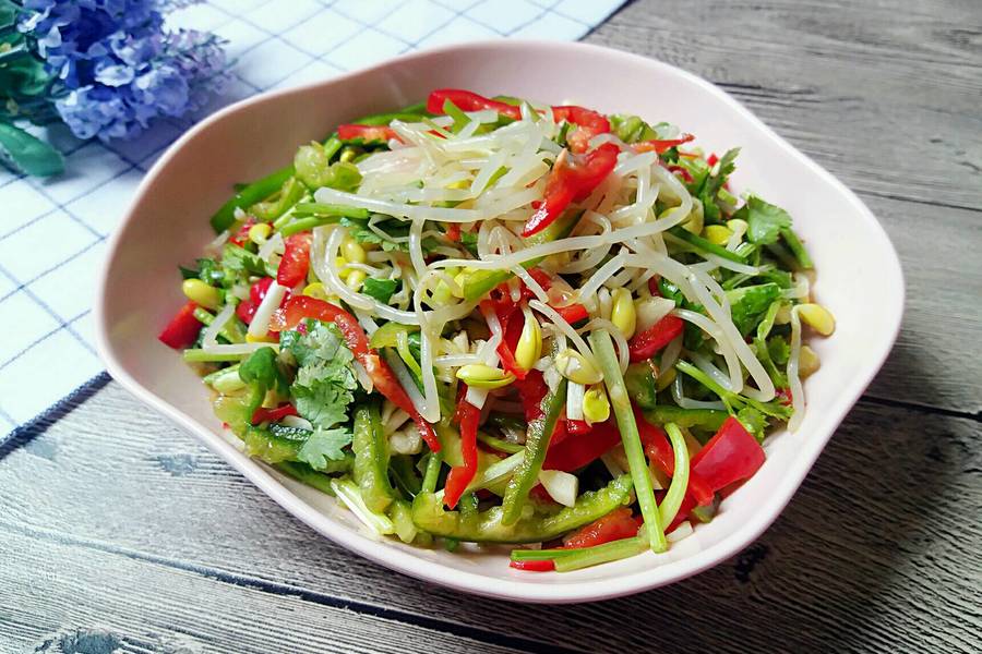 绿豆芽、胡萝卜、青椒、香葱、红椒