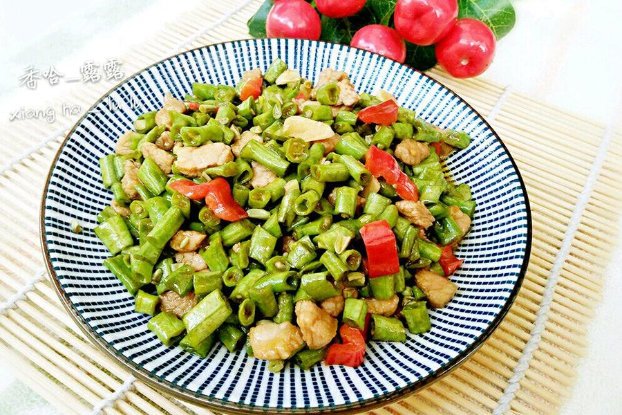 豆角、猪瘦肉、盐、食用油、生抽、香油、味精、水淀粉、十三香
