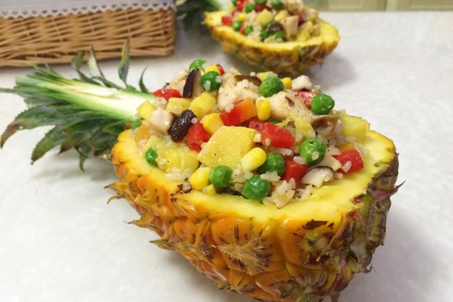 胡萝卜、豌豆、香菇、菠萝、玉米、米饭、鸡丁