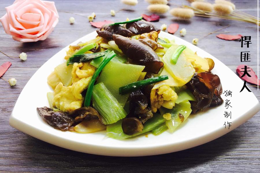 鸡蛋、干木耳、青笋