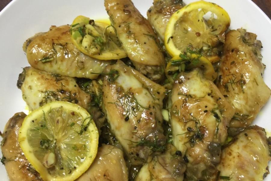 鸡翅、柠檬、盐、大蒜、橄榄油、黑胡椒碎、新鲜迷迭香(干的迷迭香也行)、新鲜罗勒(干的罗勒也行)