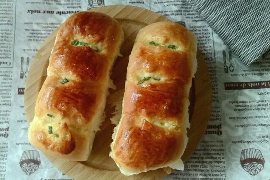 鸡蛋、香葱、蛋液、高筋面粉、即发酵母、细纱糖、黄油、盐、盐、清水、馅料:黄油