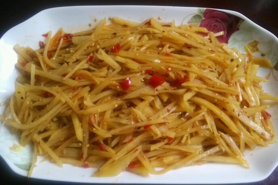 土豆、小米椒、葱姜蒜、花椒、盐、食用油、香醋、十三香、鸡粉