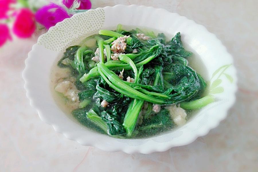 猪肉、鸡蛋、生菜、玉米淀粉、料酒、葱姜细末、盐、鸡精、香油、胡椒粉