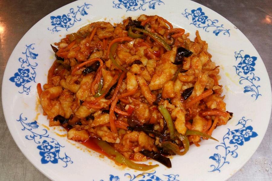 鸡脯肉、胡萝卜丝,青椒丝,