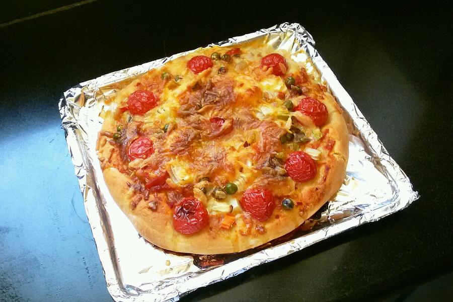 牛奶、酵母、黄油、盐、白糖、披萨饼皮:面粉