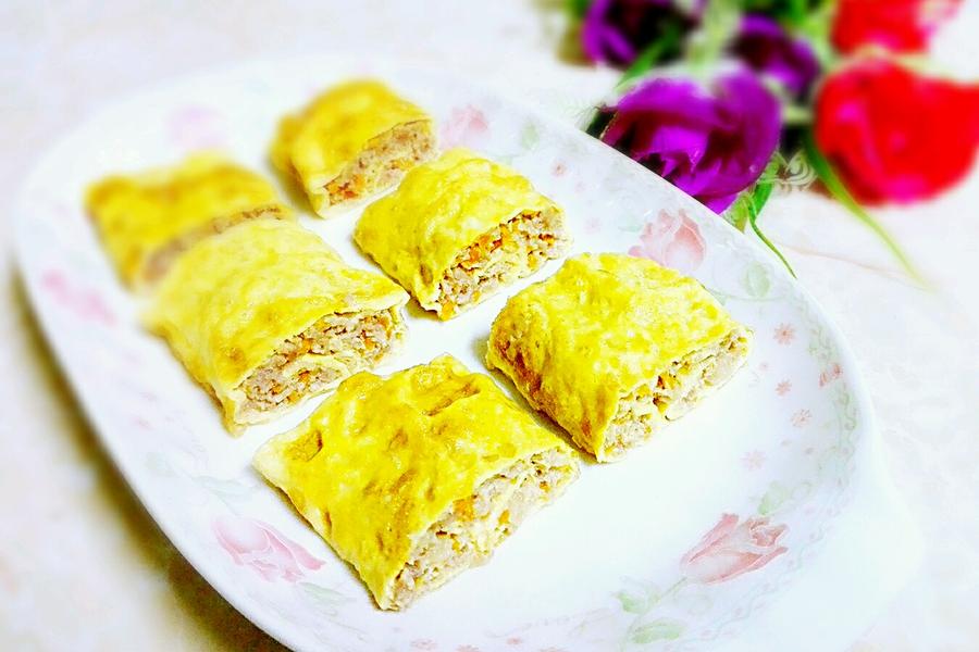 鸡蛋、面粉、盐、清水、卷入的馅料随意