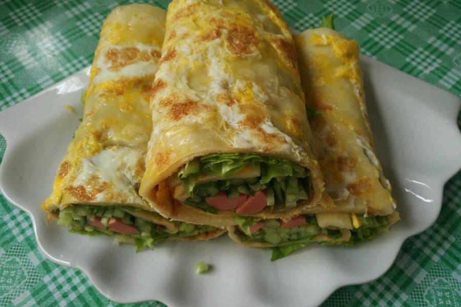 火腿、鸡蛋、生菜、黄瓜、面粉