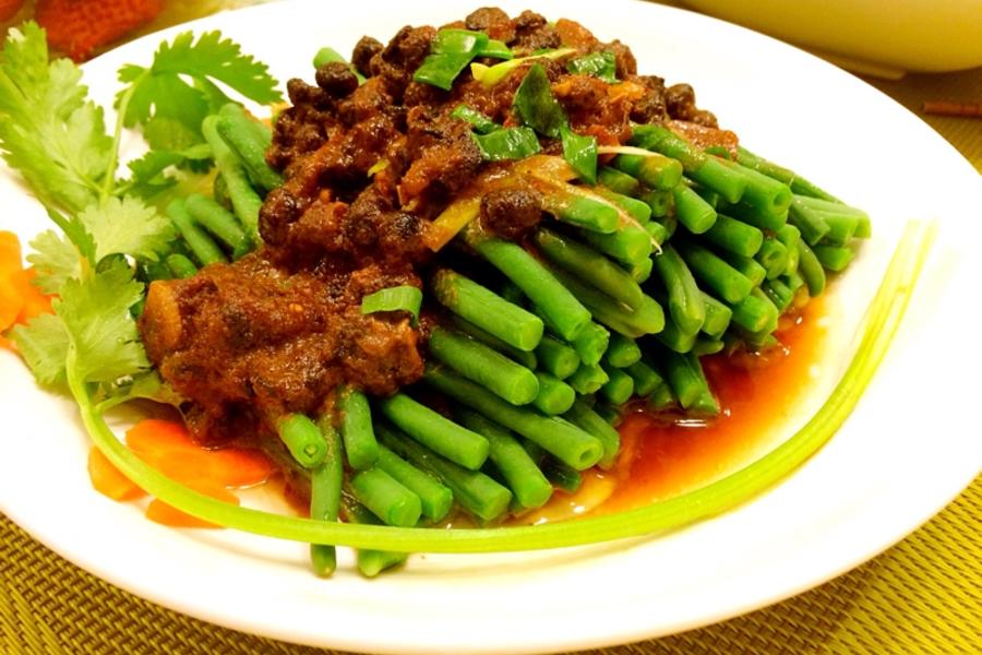 豆角、红辣椒、盐、芝麻酱、大蒜、味极鲜、绿辣椒
