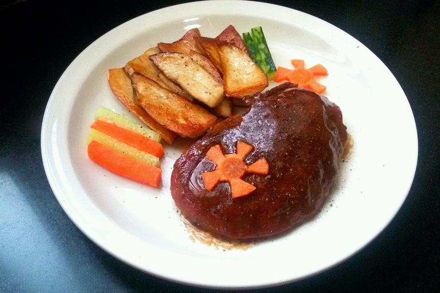 土豆、洋葱、牛肉汤、小番茄、黄油、奶油、肉眼牛排、粗粒海盐、现磨黑胡椒碎、黑胡椒汁、干邑或红酒、其它蔬菜配料