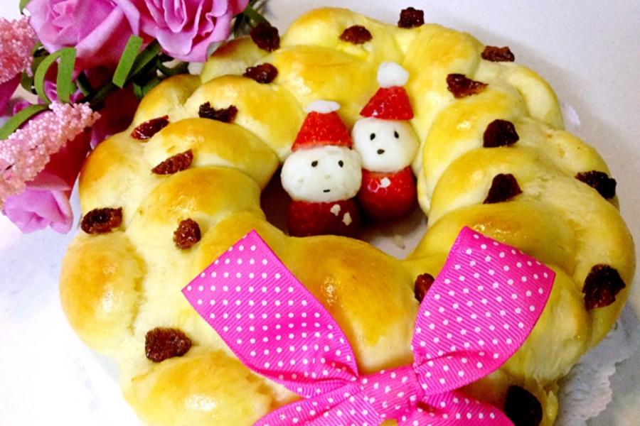 鸡蛋、牛奶、面粉、酵母、蔓越莓、融化的黄油、黄油、盐、糖、蛋黄液