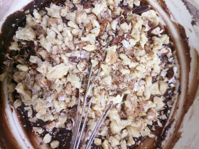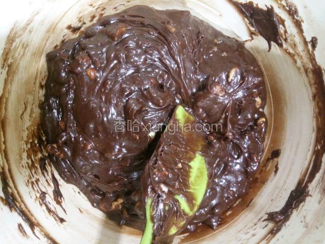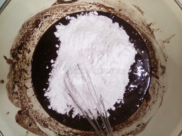 5.加入盐、可可粉、低筋粉过筛搅拌。