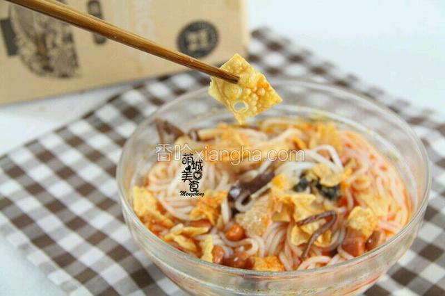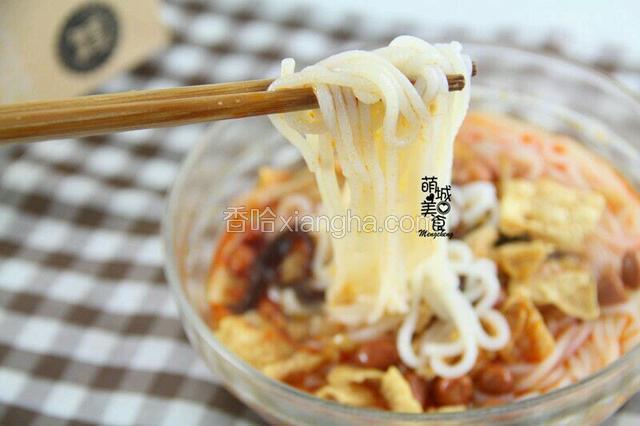 6.将泡好的米粉放入沸水中煮10分钟感觉酥软可用筷子轻松夹断即可捞出。