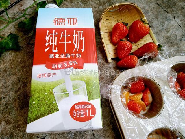 4.把切好的草莓丁放进模具中,我还放了几瓣橘子的
