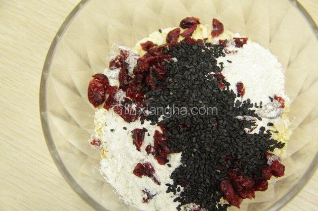 6.燕麦与杏仁片放入烤盘中,150度上下火烤至5分钟,烤至金黄变脆。
