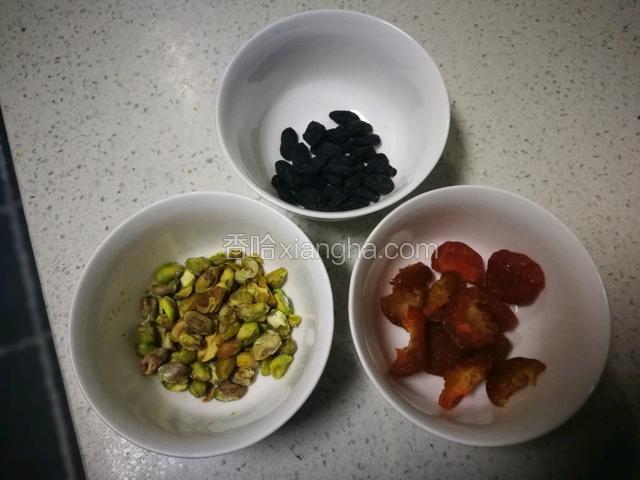 6.再放入杏干,开心果,葡萄干(家里没有葡萄干了就黑加仑替换)搅拌3分钟。