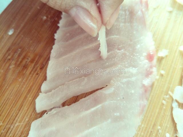 2.去除鱼腹上的鱼刺:在刺的右边切一下