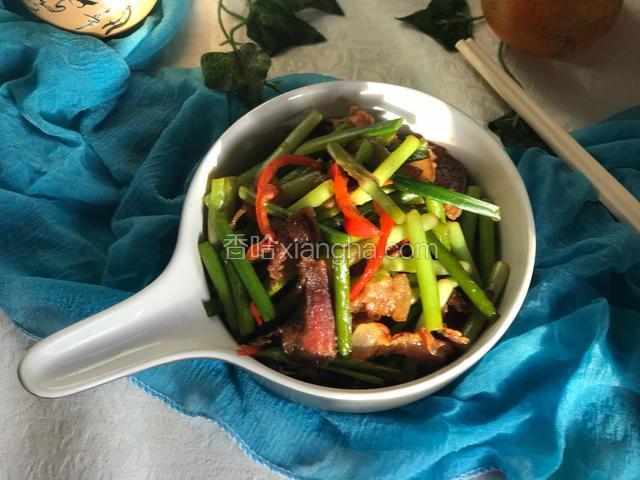 5.锅烧开水,放入蒜苔煮断生