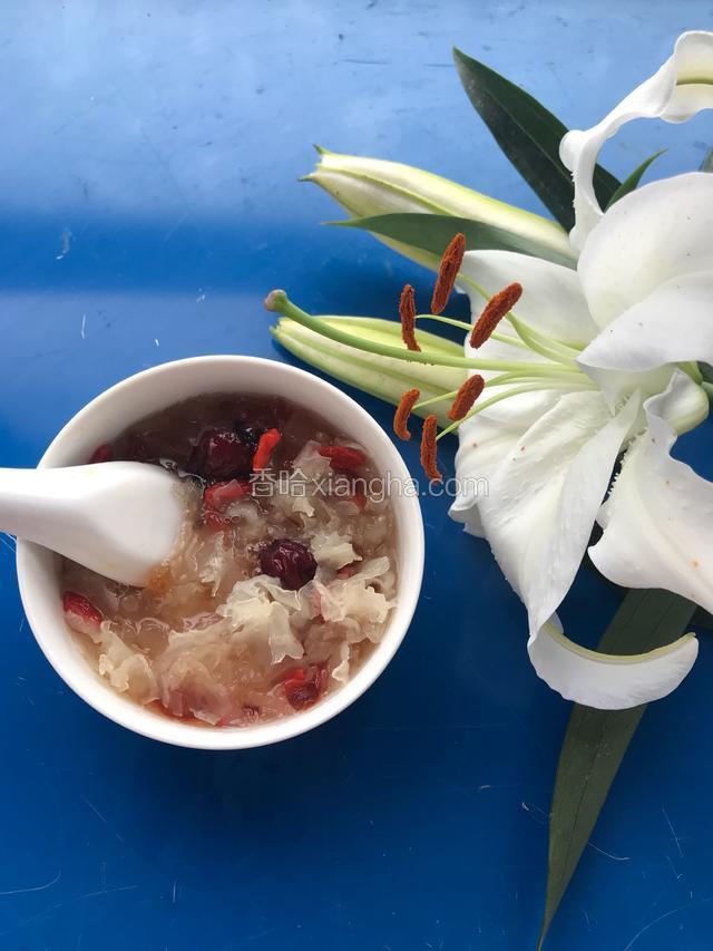 6.加入冰糖和枸杞,继续煮10分钟即可