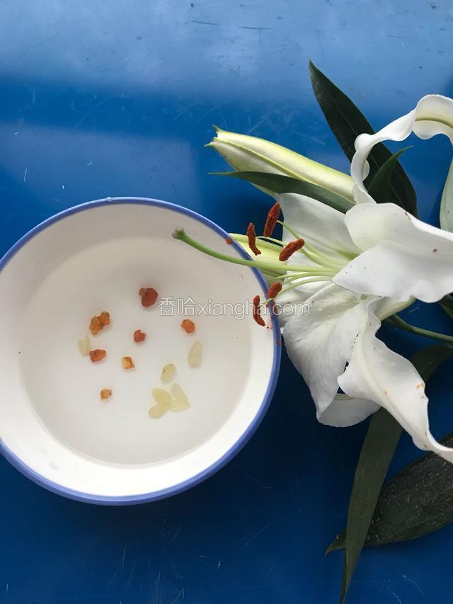 2.桃胶和皂角米头一天晚上准备好,泡一晚上