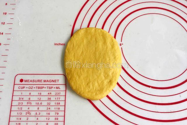 6.发好的面团取出排气,平均分成八份,滚圆松弛15分钟。