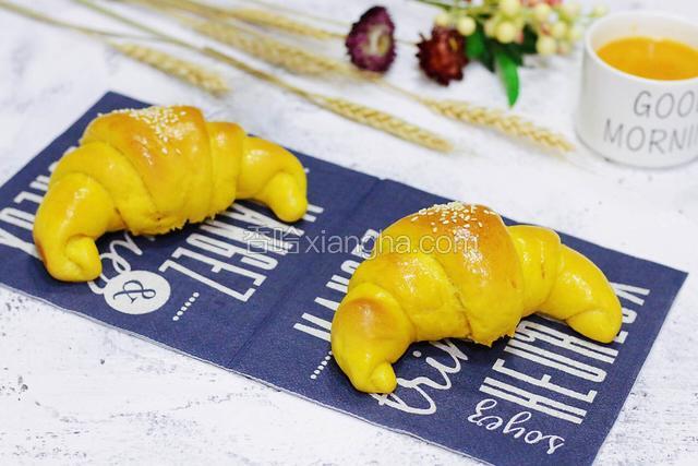 1.南瓜切薄片,放入微波炉中加热3分钟左右至熟。