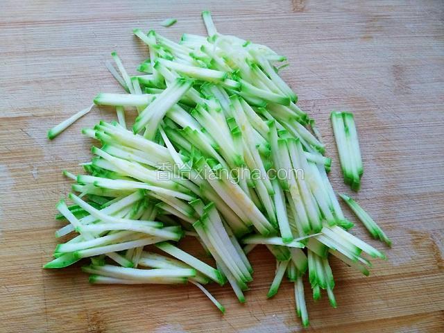 3.西葫芦放碗内,放入盐,抓匀,腌制十分钟,然后挤掉水分