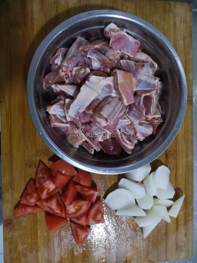 3.羊排冷水下锅,放入料酒,水开后五分钟捞出备用。