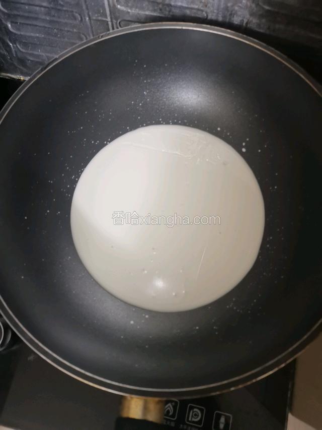 牛奶倒入不粘锅中