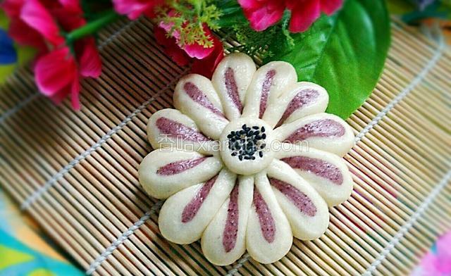 1.紫薯蒸熟加白糖压成紫薯泥放凉,加 面粉,炼奶,酵母用温牛奶化开和面,然后发酵至2倍大