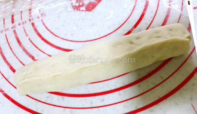 2.取一个小面团擀成长方形