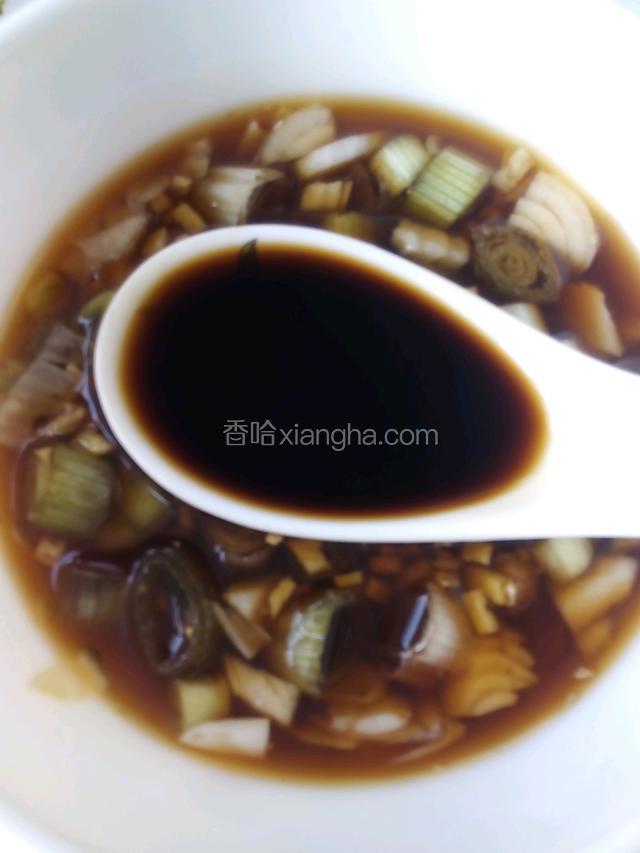 6.将生姜大蒜葱碎放在碗里 在加入料酒3勺酱油2勺陈醋2勺白糖少许 水淀粉少许搅拌均匀备用