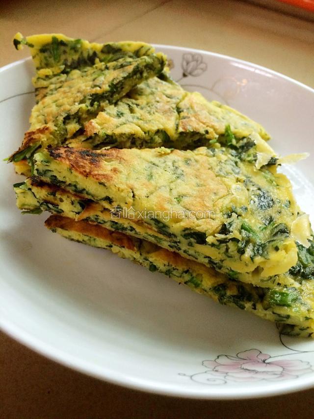 5.待到面糊搅拌均匀放入剁碎的菠菜