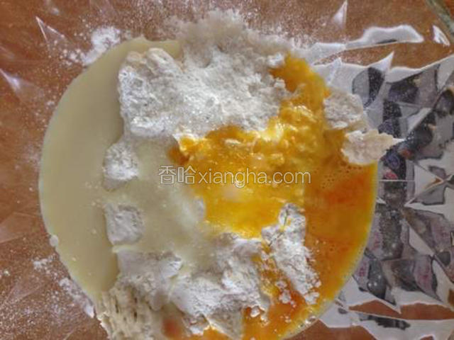 2.中种剪小块放入大碗,放入除黄油外所有的材料。混合。