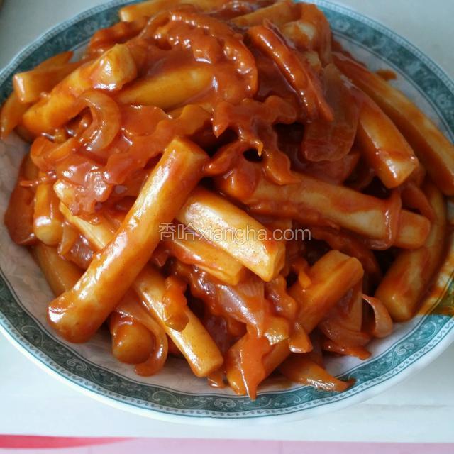 1.将买回来的年糕放清水里浸泡,并顺纹路撕开成一小条一小条状。