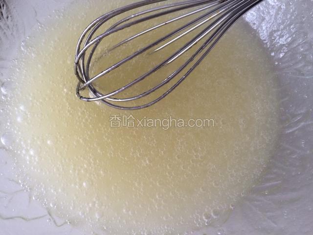2.再加入白糖继续搅打均匀,使之充分融合;