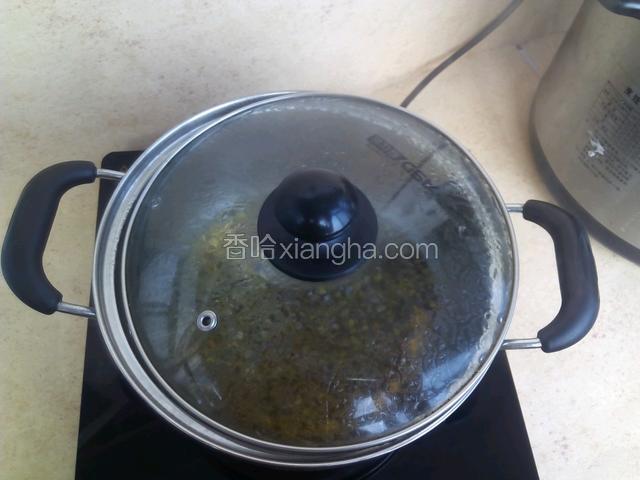 6.30分钟后绿豆也差不多开花这时加入冰糖改小火在熬5分钟即可