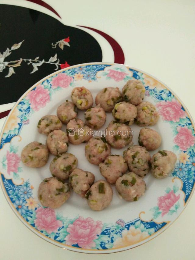 3.把袋子里土豆沫倒盆里,加入肉沫,面粉,葱花,姜沫,盐五香粉,再把水沉淀下来土豆粉加入搅均