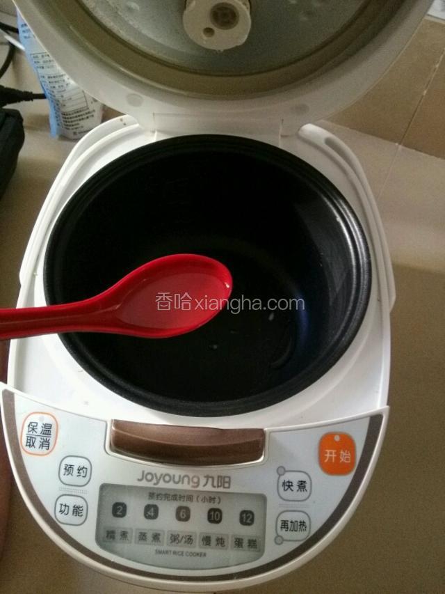 5.搅匀后加入食用油(约1汤勺)继续打5分钟,然后放入倒入电饭锅内静置