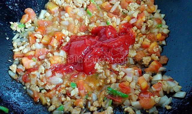 6.加入西红柿丁,炒出水份