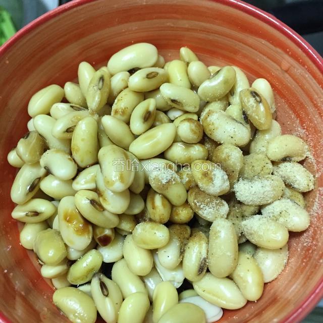 3.煮烂的黄豆用盐,味极鲜,糖,胡椒粉,醋,泡在碗里半小时以上