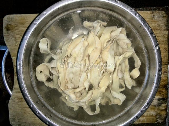 4.把捞起的肠子放进冰水里约1分钟后捞出控水。