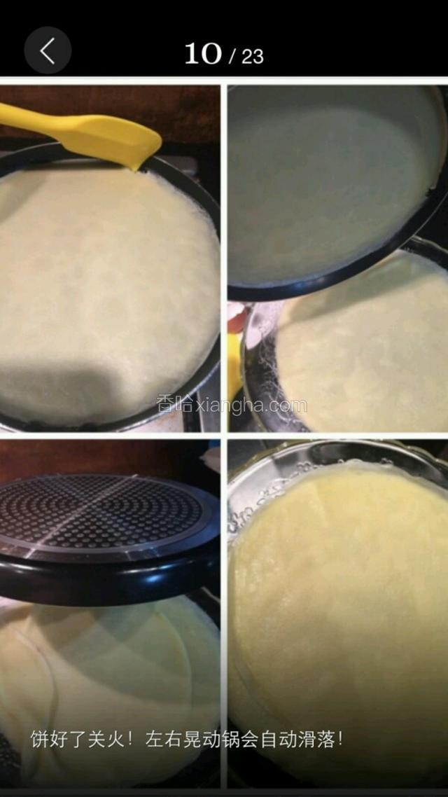 6.小火入液,然后中小火交替!小火为主!单面煎即可,不可煎煳!我的新锅比较滑轻碰饼皮边缘即可自动滑落!