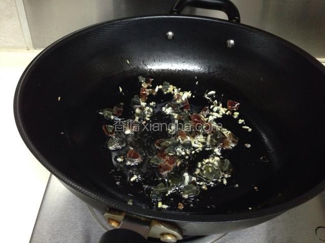 4.刀上抹醋,将皮蛋剥皮、切小丁